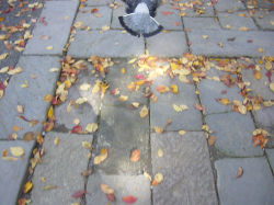 | 落ち葉、石畳と鳩 |